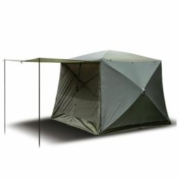 - na každé straně je umístěn jeden vchod s odnímatelnými, sklolaminátovými, podpůrnými tyčemi. Ty umožňují přeměnu vchodů na prodloužené stříšky pro spojení s bivakem.