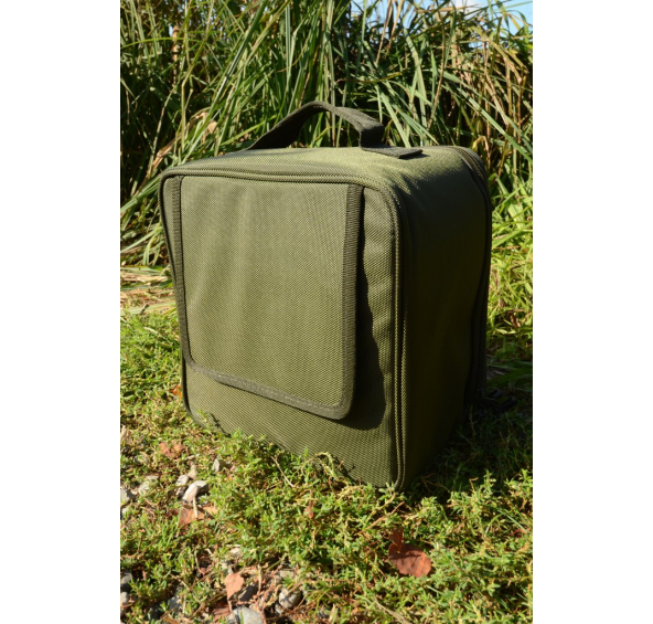 Pouzdro je z boční strany opatřeno suchým zipem pro případné připevnění k hlavní tašce setu Modular Carryall.