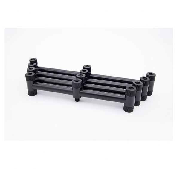 Hrazdy Stanz Buzz Bars jsou k dispozici ve variantách na dva nebo tři pruty a v různých šířkách. Všechny varianty jsou vyrobeny z odolného, lehkého a vysoce kvalitního hliníku o síle 16/20mm. Matně černá povrchová úprava jim dodává elegantní vzhled. Hrazdy jsou zespodu vybaveny závity pro možnost brankového postavení a objímkami pro upevnění hlásičů a rohatinek. Hrazdy mohou být použity i s jednou vidličkou díky centrálnímu závitu. Závity brankového postavení jsou chráněny krytkou pro případ, kdy nejsou zrovna využívány. Specifikace: • Odolná a lehká konstrukce z vysoce kvalitního hliníku • Kvalitní černá povrchová úprava • Robustní 16/20mm konstrukce • Závity pro brankové postavení chráněné krytkou