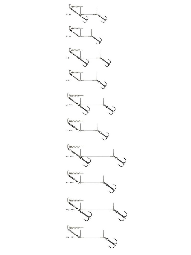 Poskytuje nástrahám velmi dobře vyváženou akci a je velmi praktická díky oválnému dělicímu kroužku. Dvojitý obratlík, posuvné hroty, lanko Carbon49 a ultra ostré SGY trojháčky činí tyto montáže velmi účinnými.