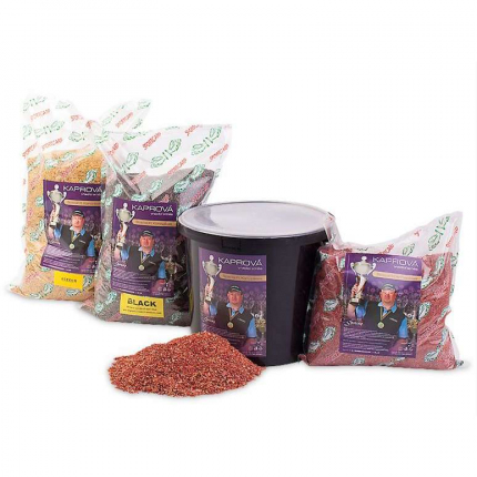 Červená je jednoznačně nejpopulárnější a mezi zákazníky zdaleka nejoblíbenější. Její složení umožňuje vytvářet směs mnoha podob. Ihned po dopadu do vody začíná pracovat a odpouštět drobné částečky s intenzivní vůní v červeném mraku. Má vynikající pojivost, takže díky ní můžete pojit drobný partikl, kterého do směsi dostanete až 40% bez toho, abychom krmné koule trhali při házení. Při citlivém míchání z ní je možno vytvořit i obalovací pastu s mimořádnou atraktivitou, která vám dopomůže k mnohem rychlejším záběrům. S velkou oblibou tuto směs používají na různých závodech i naši testeři, kdy je možné ji použít na první masivní zákrm, ale ukázala se i jako velmi silná zbraň při dokrmování během lovu ze sloupce. Při rychlém navlhčení totiž její částečky ledabyle plavou sloupcem a udržují tak, jinak letargické, ryby v "pohotovosti".
