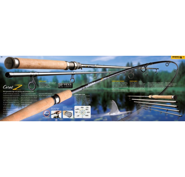 V SPORTEXe tvorenie nových prútov znamená neustálé vyhľadávanie nových inovatívnych materiálov. Carat Z je prvý z novej generácie prútov vyrobených z kompozitných vysoko modulovaných uhlíkových vlákien a Zylonu, čím bola vytvorená nová dimenzia rybárskych prútov. Táto kombinácia materiálov nie je len tvrdosť, ľahkosť a rýchlosť ktorá je očakávaná od uhlíkových blankov, ale kombinuje tieto vlastnosti s tevnosťou v ťahu a silou, ktorá je typická pre Zylon. Výsledkom je rýchla akcia prívlačových prútov so štíhlim a ľahkým blankom ktorý je prakticky nezničiteľný. Naše vysoké požiadavky na kvalitu materiálov, komponentov a spracovania sú opäť jasne viditeľné. Moderný elegantný dizajn a perfektný systém vyváženia z modelov TiBORON je aj u tejto série prútov. Jedinečné inovácie ktorých výsledkom sú hmatateľné výhody pre rybárov spolu so SPORTEX kvalitou spracovania - to je SPORTEX Carat Z.