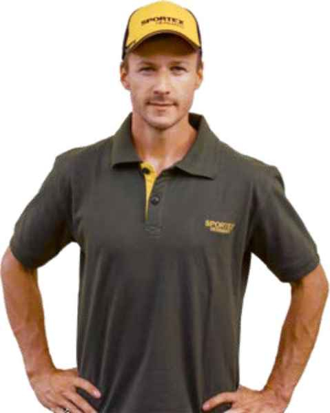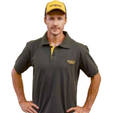 Funkční polokošile v černo-žlutých barvách a logem Sportex v přední a zadní části. Barevné rukávy a límec upínací dvěma knoflíky.