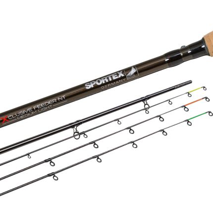 Feeder pruty SPORTEX Xclusive NT Medium Light jsou ideální pro lehký a střední feeder na stojatých a tekoucích vodách. Bez problémů zvládnou zdolávání bílé ryby a středních kaprů. Blank je zhotoven z T800 uhlíkových vláken pomocí nejmodernější nano technologie, což dodává prutem rychlost a sílu. S prutem SPORTEX Xclusive se vám bude snadno nahazovat přímo na cíl. Ručka je osazena jemným přírodním korkem pro maximální komfort. Samozřejmostí u prutů SPORTEX je pevné sedlo navijáku a nejkvalitnější SIC očka. Ke každému prutu jsou dodávány tři uhlíkové špičky 2oz, 3oz a 4oz. Zaujaly vás feeder pruty SPORTEX? Koukněte také na SPORTEX Rapid Feeder nebo také na oblíbený SPORTEX Exclusive METHOD Feeder .