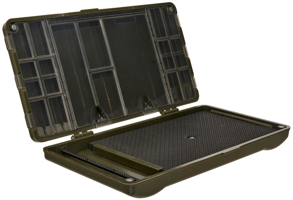 Jedna strana obsahuje samostatně uzavíratelné přihrádky na drobnosti a bižuterii (20x). Polepy na přihrádky pro snadnou organizaci. Na druhé straně je neoprenový panel pro uchycení návazců, hrazda pro zachycení háčků, aby nedocházelo k poškození hrotů háčků.