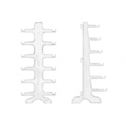 Delphin SG-STAND je praktickým řešením pro přehledné a efektní vystavení šesti kusů brýlí. Je vyroben z odolného čirého plastu, který zajišťuje odolnost vůči mechanickému poškození a zároveň nechává vyniknout samotné produkty. Díky vertikálnímu provedení šetří prostor a je vhodný nejen do prodejen, ale také jako organizér do domácností. Konstrukce ...