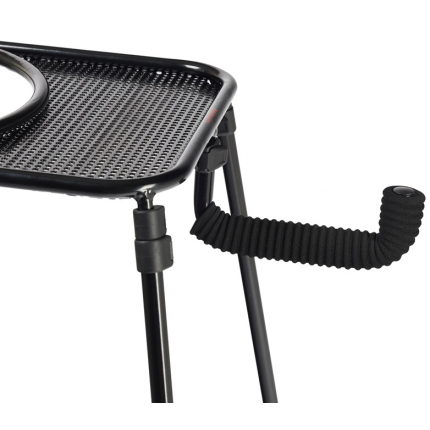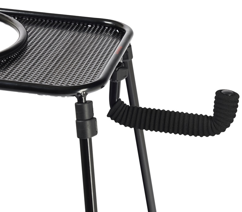 Nohy lze pro snadný transport odšroubovat. Součástí stojanu je i menší stoleček na odkládání drobností a hrazda na opření prutu. Kbelík není součástí balení. Dodáváno v transportním obalu.