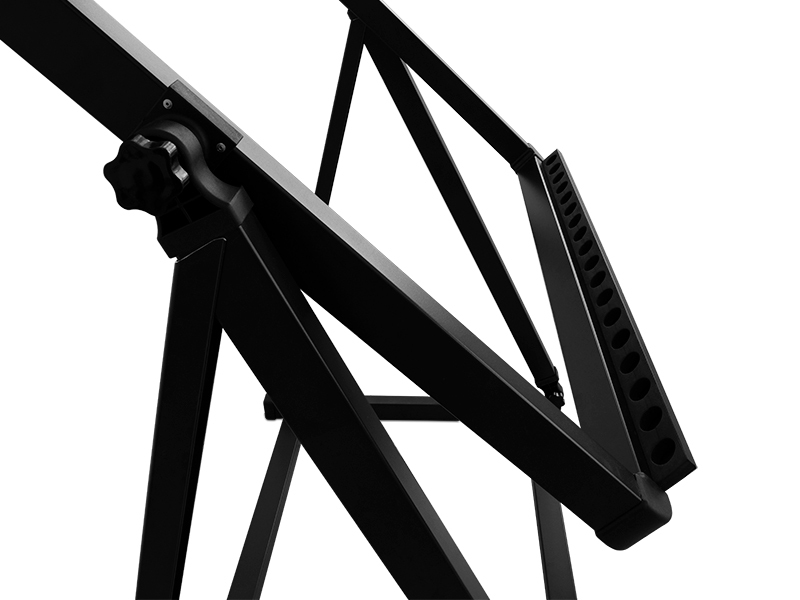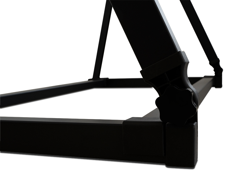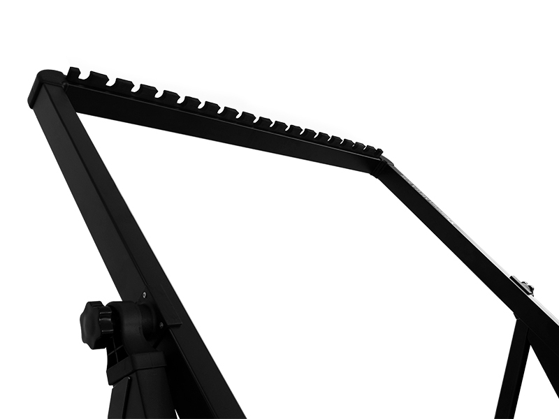 Stojan určený pro ukázkovou prezentaci prutů ve vaší prodejně. Díky svým rozměrům lze na něj uložit a vystavit až 18 prutů. Je vyroben z masivních hliníkových profilů, které zabezpečují jeho stabilitu a dlouhou životnost. Hlavní část stojanu lze nastavit do požadovaného sklonu, což umožňuje přizpůsobení vzhledem k prostorovým možnostem. Samotná lůžka na pruty jsou vyrobena z pěny, čímž pruty v nich budou nejen chráněny, ale i dostatečně vzdáleny tak, aby vynikl každý jeden. Technické parametry: Transportní rozměry: 110x20x20cm Rozměr rámu: 102x102cm Výška stojanu: 110-155 cm Hmotnost: 6kg Počet míst na pruty: 18
