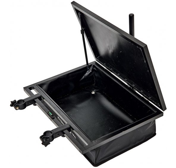Praktický stoleček s víkem, který ochrání vaše nástrahy a krmení před sluncem i deštěm. Dodáváno s jednou podpůrnou nohou o průměru 25 mm. Pasuje na kulaté nohy o průměru 36 mm. Rozměr 60x40x15 cm.