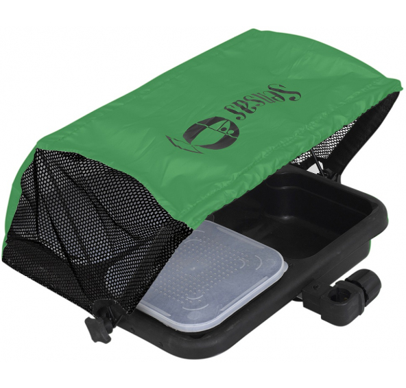 Stoleček se skládací stříškou, který ochrání vaše nástrahy před sluncem i deštěm. Součástí jsou dvě misky s víkem. Rozměr 38x38 cm. Pasuje na kulaté nohy 25-30-36 mm