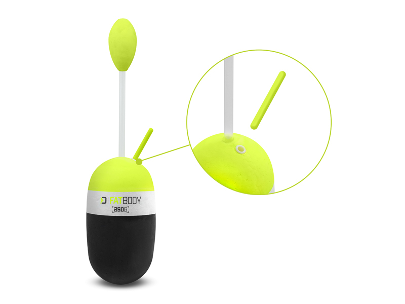 Delphin FatBODY je sumcový splávek, který je díky svému tvaru a vysoké anténě dobře viditelný i na větší vzdálenosti, ve vlnách nebo v nepříznivých podmínkách. Tvar těla jej předurčuje k lovu s většími nástražními rybkami. Splávek FatBODY je vhodný zejména při lovu na trhačku, kde dokáže podržet nástrahu na přesně zvoleném místě. Tělo splávku je vybaveno otvorem na anténu o průměru 4mm, kterou můžete během noci nahradit chemickým světlem. Kombinace fluouzelené a černé barvy poskytuje vysokou viditelnost i při nepříznivých podmínkách jako je například mlha nebo silný déšť. Technické parametry: Gramáž: 150g Gramáž: 250g