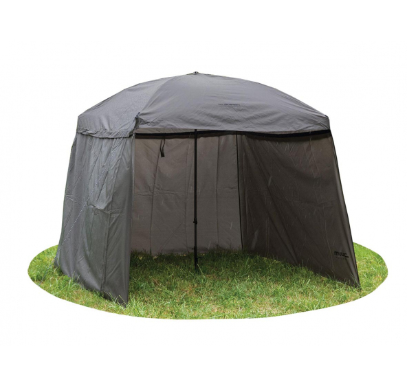 Rybářský deštník DUUM 220 Full Cover má revoluční a ojedinělou konstrukci. Krytý půdorys 2,2x2,2m je díky použití čtyř zesílených sklolaminátových ramen přísně čtvercový, což umožňuje stoprocentní využití vnitřního prostoru. S odlehčeným rámem se lépe manipuluje a ulehčuje stavbu celého deštníku. Kryt zipu je umístěný pod ramena. Při dešti tak voda plynule stéká, nehromadí se u švu a tím se minimalizuje možnost prosáknutí vody dovnitř. Na koncích ramen jsou už od výroby integrované klouby se závitem na teleskopické tyče. Při dokoupení čtyř tyčí (kód 5104100ES) lze deštník na ně postavit a odšroubovat středovou tyč. Vznikne tak uvnitř prostor pro volný pohyb.