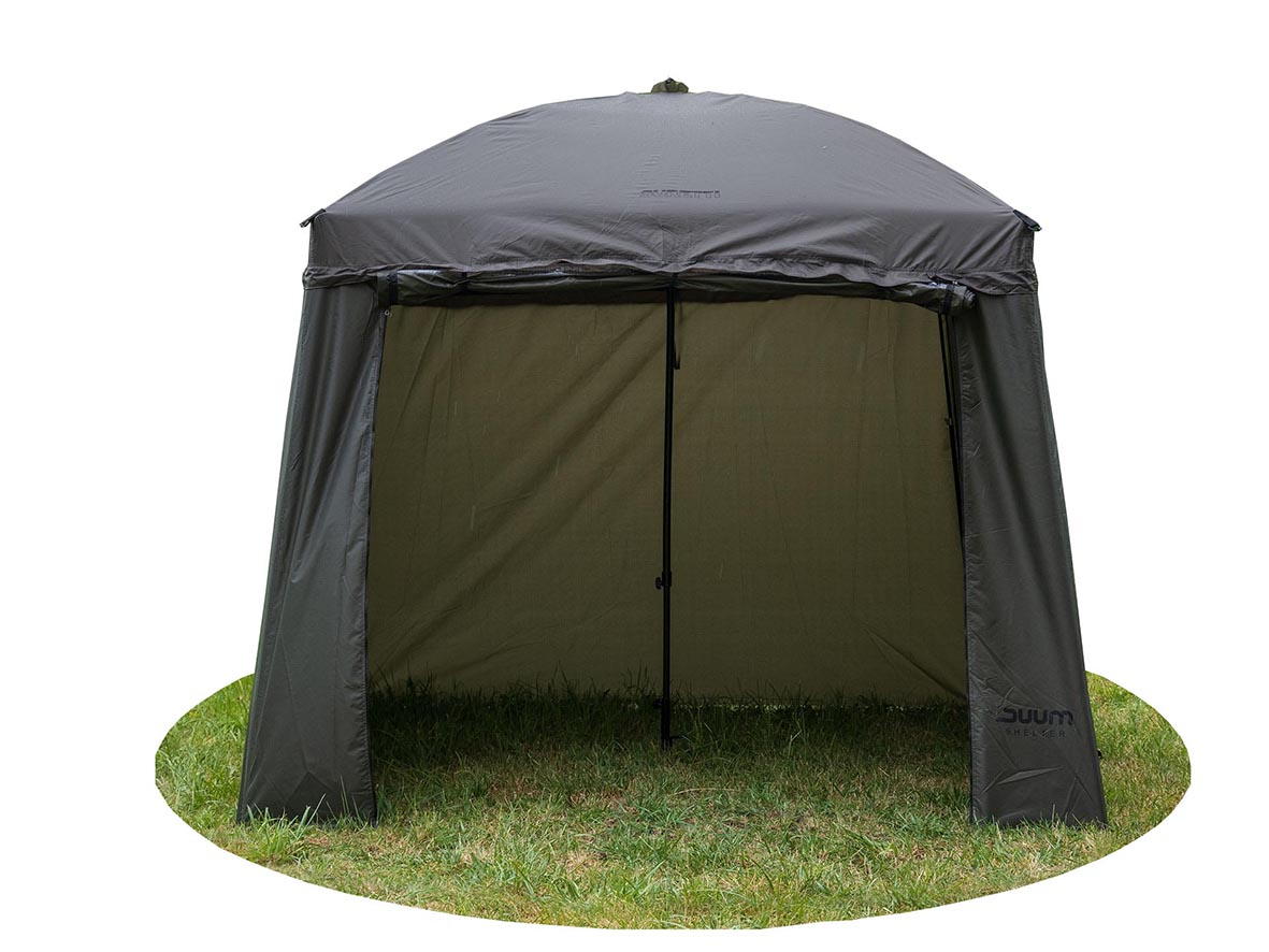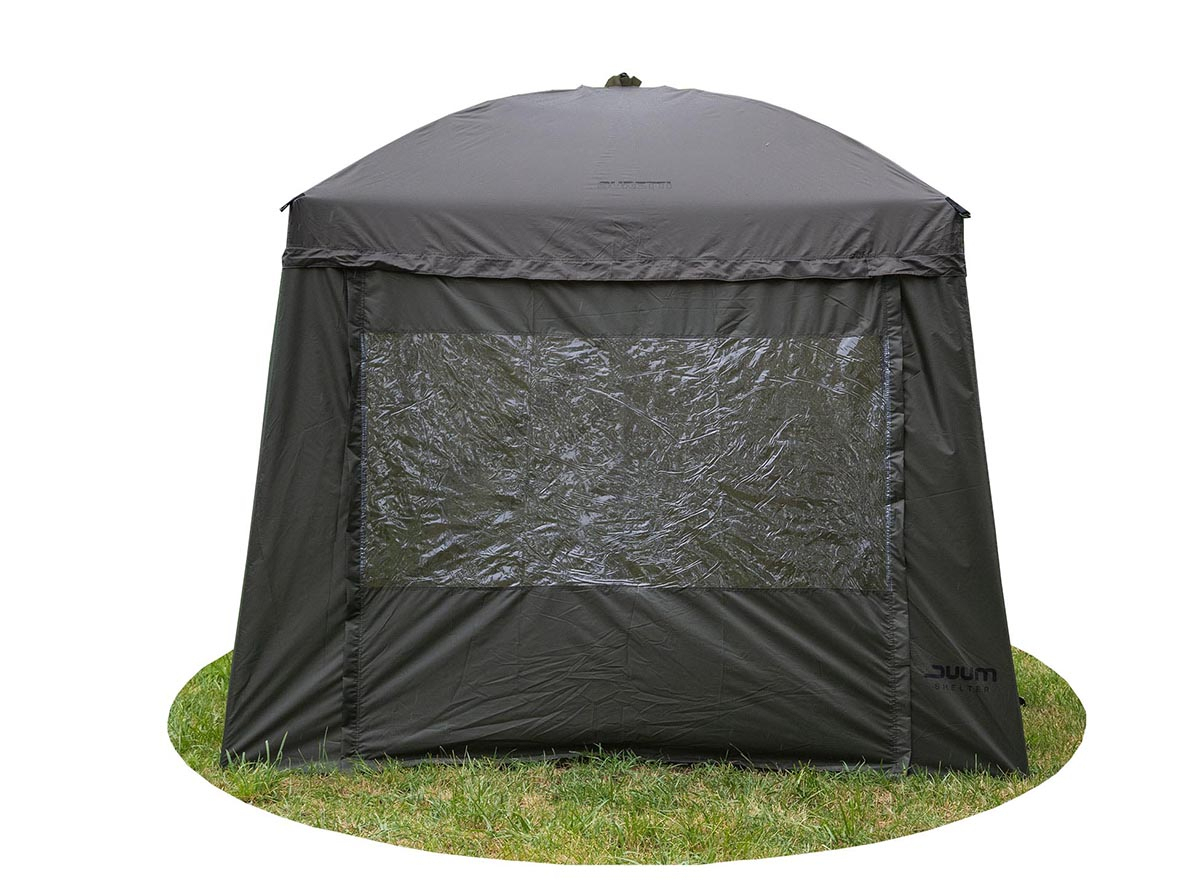 Rybářský deštník DUUM 250 Full Cover má revoluční a ojedinělou konstrukci. Krytý půdorys 2,5x2,5m je díky použití čtyř zesílených sklolaminátových ramen přísně čtvercový, což umožňuje stoprocentní využití vnitřního prostoru. S odlehčeným rámem se lépe manipuluje a ulehčuje stavbu celého deštníku. Kryt zipu je umístěný pod ramena. Při dešti tak voda plynule stéká, nehromadí se u švu a tím se minimalizuje možnost prosáknutí vody dovnitř. Na koncích ramen jsou už od výroby integrované klouby se závitem na teleskopické tyče. Při dokoupení čtyř tyčí (kód 5104100ES) lze deštník na ně postavit a odšroubovat středovou tyč. Vznikne tak uvnitř prostor pro volný pohyb....