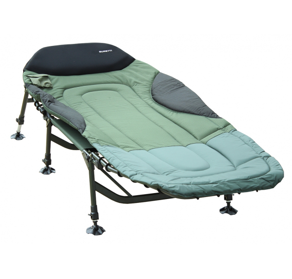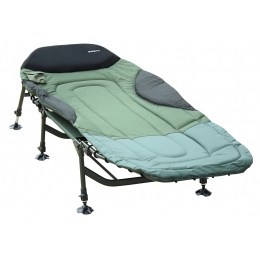 Exkluzivní lehátko se třemi páry nohou. Široké polstrování chrání před větrem a zimou. Matrace je ušita z velmi pevného materiálu 600D Oxford-Nylonu s přidanou protiskluzovou osnovou. Polštář a boky jsou z neoprénu a polštář je navíc možno vyndat a v případě potřeby vysušit. Nosnost lehátka je dimenzována s rezervou do 135kg. Kompaktní konstrukce, vyztužené klouby opěradla a husté vinutí nosné gumy to jen potvrzují. Teleskopické nohy mají pružinový, lehce ovladatelný zámek a protiskluzovou podložku otočnou o 360°. V základní výbavě je i kapsa našitá na matraci na mobilní telefon nebo příposlech.