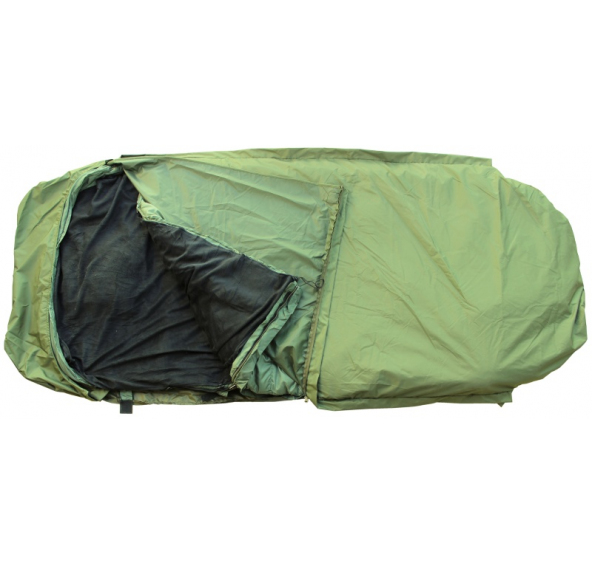 Jednoduchý přehoz na spací pytel. Tento jednoduchý přehoz je konstruován na spací pytel Emotion Xtreme. Přehoz je z PU 210D Oxford-Nylonu s paropropustnou membránou, tzn., že materiál má odolnost proti vodnímu tlaku 10 000 mm vodního sloupce a naproti tomu propustí 10 000 g vodních par na 1 m2/24 hod. Tento materiál Vám zajistí, že budete vždy v suchu - chráněni před deštěm. Přehoz má po obou stranách podobně jako spacák zipy s chlopněmi chránícími ho před větrem a dešťovými kapkami hnanými větrem. Pokud máte tento přehoz, nemusíte k vodě tahat objemný přístřešek a k přenocování u vody Vám stačí už jen lehátko, spacák, a malý deštník na ochranu hlavy před deštěm.