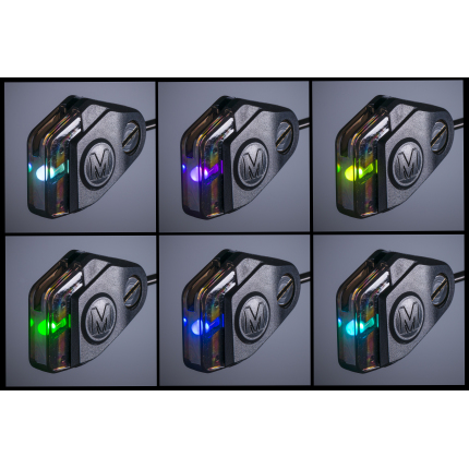 Svítící signalizátor záběru s unikátně tvarovaným tělem a nastavitelnou barvou diody (7 barev). Posuvným závažím snadno upravíte hmotnost včetně úplného odlehčení signalizátoru. Vnitřní kuličkový klip funguje spolehlivě a bezpečně při použití vlasců i pletených šňůr všech průměrů. Signalizátor lze snadno a rychle upevnit k adaptéru na vidličce pomocí robustní bajonetové spojky.