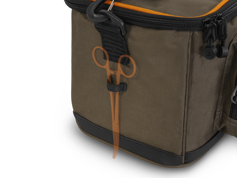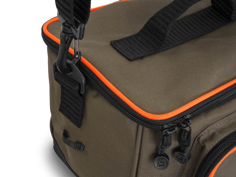 Přístup do hlavního úložného prostoru poskytuje kvalitní zip s taháčky a s logem značky Delphin. Víko tašky z vnitřní strany navíc ukrývá zipovatelnou kapsu ze síťoviny pro uložení drobné rybářské bižuterie nebo dokladů. Kromě toho taška nabízí další ukládací prostor ve formě zipovatelné kapsy na přední straně. Protože u všech našich produktů dbáme na detaily, i u tašky Easy XL jsme na obou stranách tašky přidali poutka pro vložení peanu nebo kleští. Tašku lze pohodlně přenášet pomocí kvalitního, odepínatelného, délkově nastavitelného popruhu pro nošení přes rameno, nebo pomocí textilní rukojeti umístěné na víku.