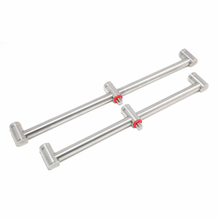 Špičkové elegantní hrazdy vyrobené z nerezové oceli, které zaručují bezpečné a stabilní uložení vašich prutů. Na jejich výrobu byl použit pevný nerezový materiál z UK o tloušťce 13,9 mm. V nabídce jsou hrazdy na 2, 3 i 4 pruty, pevné i výsuvné a na jednu vidličku, či na dvě, tzv. SNAG. Některé mají navíc speciální Dual Lock systém upínání, díky kterému skvěle zafixujete hlásiče i rohatinky. Balení: 2 ks