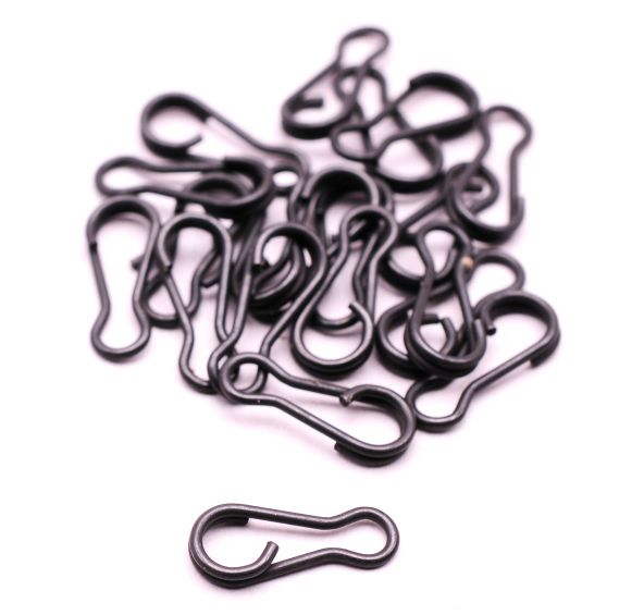 Popis produktu Taska obratlíky, kroužky - Rychlovýměnný klip medium 20ksRychlovýměnný klip mini a medium (20ks) k rychlé výměně návazců a olov. Vyroben z matného černého kovu.