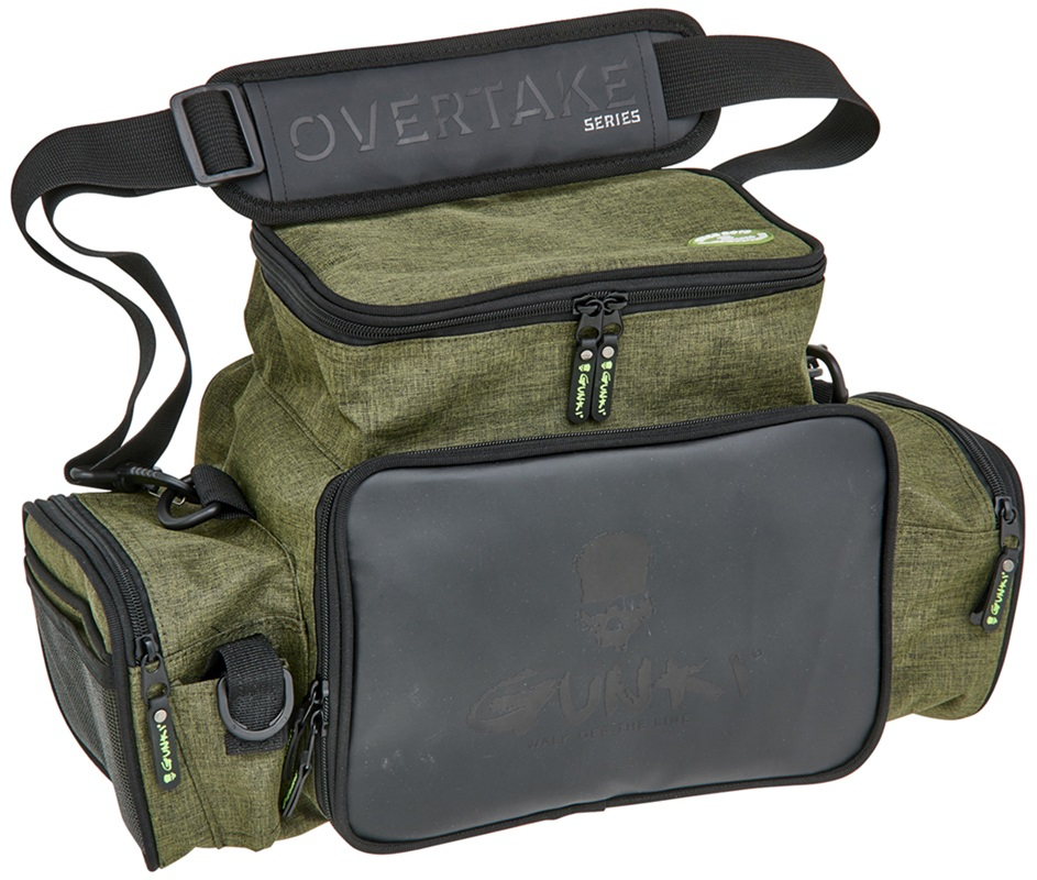 Celý popisTaška pro uskladnění všeho potřebného na přívlač. Taška obsahuje hlavní komoru, tři vnější kapsy na zip, dvě síťové kapsy a držák kleští. Součástí hlavní komory jsou tři krabičky na nástrahy o rozměrech 27,5×19,5×4,5 cm. Horní komora navíc obsahuje krabičku na nástrahy 20×13,5×4 cm, která je velmi praktická pro uspořádání drobného příslušenství. Po stranách se nachází řada „vedlejších“ kapes (na zip, síťovaných, průhledných nebo na kleště). Pevná odolná tkanina je doplněná o kvalitní zipy. To vše v Gunki designu. Součástí je odnímatelný ramenní popruh. Rozměry: 28x20x18 cm.