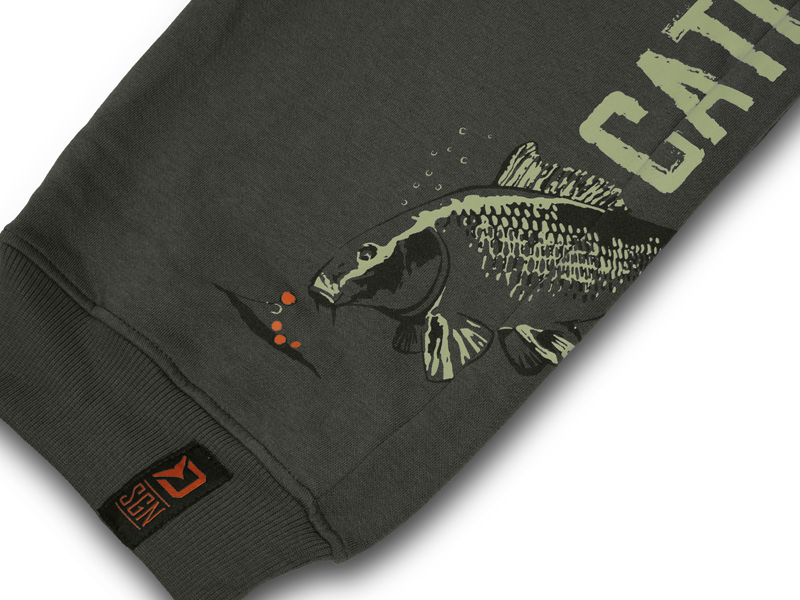 Tepláky Catch me CARP NX jsou doplněny na levém boku efektní grafikou s nápisem CATCH ME IF YOU CAN a kaprem nasávajícím potravu ze dna. V kombinaci se stejnojmennou mikinou a tričkem dostanete stylový outfit, ve kterém se u vody budete cítit maximálně pohodlně.