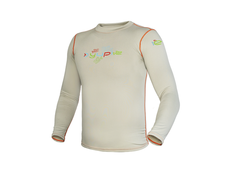 Disponuje dlouhými rukávy a vyvýšeným límcem, což přispívá k udržení optimální tělesné teploty. Elastický límec, konce rukávů a spodní část jsou dodatečně prošívané pro zajištění dokonalého přilnutí ke kůži, aby se tím minimalizovaly úniky tepla. Spodní část vrchního dílu je mírně prodloužena, aby docházelo k ideálnímu krytí se spodky Delphin YUPIE i při pohybově namáhavějších aktivitách.