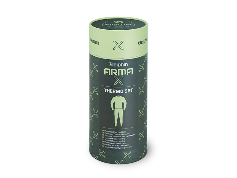 Vrchní díl Disponuje dlouhými rukávy a vyvýšeným límcem, což přispívá k udržení optimální tělesné teploty. Elastický límec, konce rukávů a spodní část jsou dodatečně prošívané pro zajištění dokonalého přilnutí ke kůži, aby se tím minimalizovaly úniky tepla. Spodní část vrchního dílu je mírně prodloužena, aby docházelo k ideálnímu krytí se spodky Delphin ArmaX i při pohybově namáhavějších aktivitách. Spodní díl Pružný pas se svojí elasticitou přizpůsobí každému typu postavy a při nošení horního dílu zajistí jeho polohu i během aktivního pohybu. K udržení tepelného komfortu přispívá i zúžené ukončení spodního dílu v oblasti kotníků. Termoprádlo ARMAX je vysokokompresní prádlo vyhotovené z tkaniny výrazně vyšší gramáže, než je obvyklé. V případě, že kvůli komfortu preferujete volnější střih, doporučujeme vzít o jedno číslo větší velikost, než standardně nosíte.