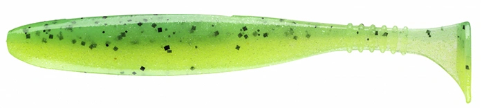 Shad s klasickým kopýtkem. Ve vodě předvádí silné vlnivé pohyby i bez jigové hlavičky. Během testování ve Francii byl tento smáček postrachem všech candátů a okounů....