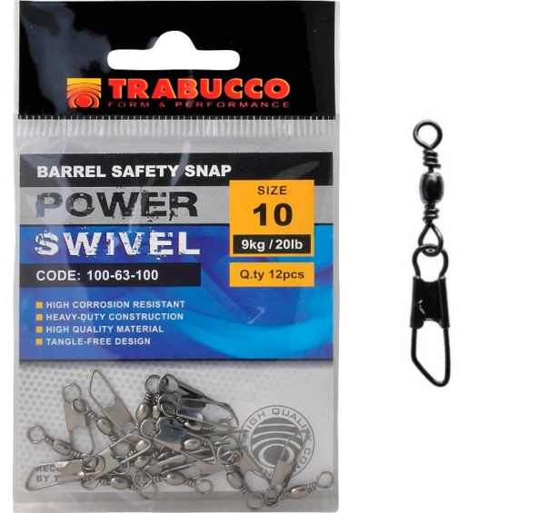 Popis produktu Trabucco karabinka s obratlíkem Barrel Safety Snap 12ks|vel.14 (7kg)