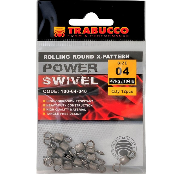 Vysoce pevnostní obratlík.Tělo odolné vůči korozi. Zesílený a kvalitní materiál pro maximální odolnost. Nedochází k zamotání vlasce. Kód Velikost Kg Lb 100-64-040 04 47 104 100-64-060 06 43 95 100-64-080 08 40 88 100-64-100 10 35 77 100-64-120 10 32 71 100-64-140 14 27 60 100-64-160 16 22 49 100-64-200 20 14 31 100-64-220 22 9 20 100-64-240 24 4 9
