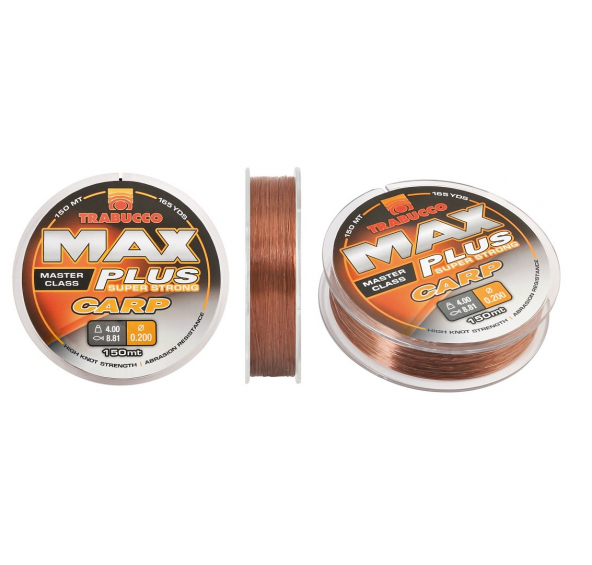 Vlasec Max Plus Carp od firmy Trabucco je specializovaný na lov velkých ryb díky jeho velké odolnosti proti oděru a pevnosti v uzlu. Díky jeho absenci paměti a snížené elasticitě dosáhnete rychlých a přesných náhozů a přesnější indikaci záběru. Jeho hnědá barva je vhodná do všech vodních prostředí, tedy ideální pro lov velkých kaprů. I díky jeho ceně je tento vlasec velmi atraktivní. Technické údaje: Délka: 150m Průměr: 0,20mm / Nosnost: 4,00kg Průměr: 0,22mm / Nosnost: 4,90kg Průměr: 0,25mm / Nosnost: 5,80kg Průměr: 0,28mm / Nosnost: 6,85kg