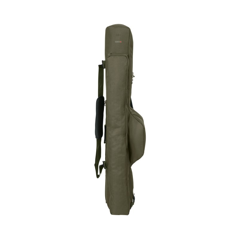 Silně polstrovaný obal na 3 teleskopické pruty nabízí spoustu místa pro 3 plně vybavené pruty o délce 10 ft. Dvojitý, odolný, hlavní zip poskytuje rychlý a snadný přístup k vašim prutům a navijákům. Rozšířená vrchní část, spolu s vnitřním polstrováním, pojme bez problémů 50 mm očka, což zajistí, že vaše pruty jsou během přepravy bezpečně chráněny. Každý prut je oddělen vnitřní polstrovanou kapsou a upevněn na svém místě pomocí vnitřních popruhů. Vnitřní popruhy lze využít i k uložení vašeho spodového prutu, takže i ten může těžit z polstrované ochrany.