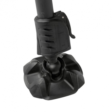 Lehátko má 6 plně nastavitelných nohou s otočnými patkami pro rovnoměrné rozložení zátěže, silný rám s plně plochým profilem a vodováhou pro dokonalé vyrovnání i na nerovných terénech a svazích.