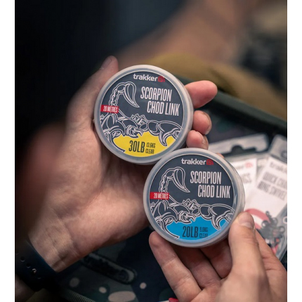 Scorpion Chod Link je k dispozici v 20 a 30 lb. Povrchová úprava je v matně čirém provedení s nízkou viditelností, takže je téměř neviditelná na všech typech dna.