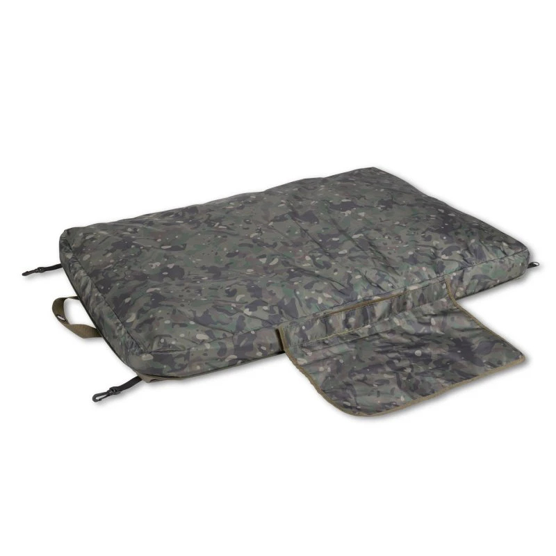 Váš úlovek lze umístit i na vnější vrstvu odháčkovací podložky, nebo jí lze odepnout a použít pro přikrytí úlovku. Dodává se s velkou odnímatelnou podložkou pod kolena, která může sloužit jako praktický úložný vak například pro váhu nebo další produkty péče o kapry.