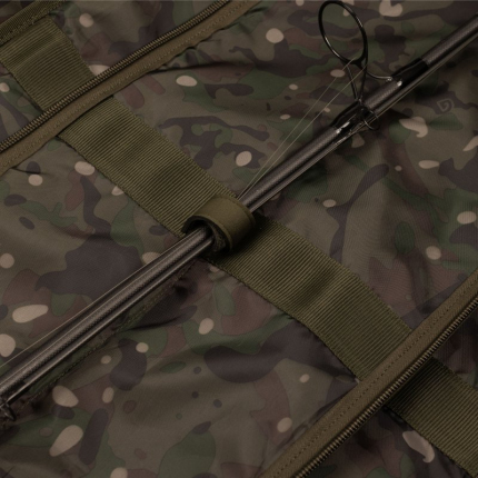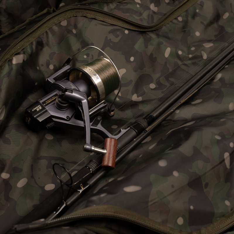 Dvoucestný, odolný hlavní zip zajišťuje rychlý a snadný přístup k vašim prutům a navijákům. Rozšířené části špiček, spojené s vnitřním polstrováním, pojmou bez problémů 50 mm očka a zajistí, že budou vaše pruty během přepravy chráněny. Každý prut je oddělen vnitřním, polstrovaným pouzdrem a zajištěn na místě pomocí vnitřních neoprenových pásků. K dispozici je i další popruh a elastická smyčka, kterou lze použít pro uložení kobry, takže i ona může těžit z polstrované ochrany. Nadrozměrná část pouzdra na naviják je silně polstrovaná a velkoryse dimenzovaná, aby ochránila i ty největší navijáky. Obě strany pouzdra NXC 3 Rod Sleeves mají velké vnější kapsy na zip, které jsou vhodné pro podběráky, vidličky a další příslušenství. Na zadní straně je na základně velká otevřená kapsa, kam můžete uložit další prut, který lze zajistit pomocí napínacích popruhů. Do další, menší otevřené kapsy na zip lze umístit podběrák nebo uložit distanční tyče. Hned pod hlavním zipem je úhledně umístěná kapsa na zip pro uložení olov.