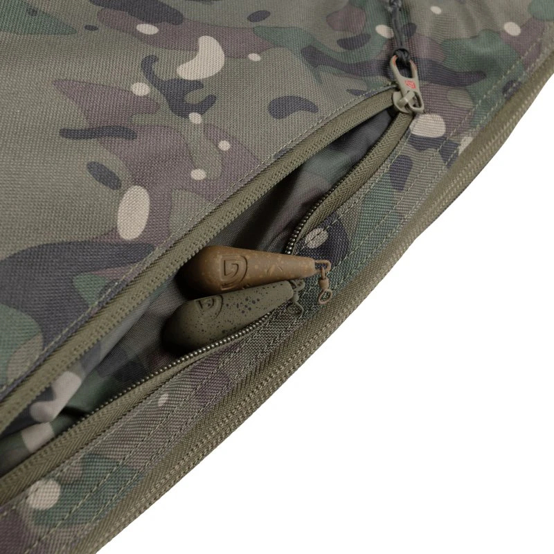 Dvoucestný, odolný hlavní zip zajišťuje rychlý a snadný přístup k vašemu prutu s navijákem. Rozšířená část špičky, spojená s vnitřním polstrováním, pojme bez problémů 50 mm očko a zajistí, že bude váš prut během přepravy chráněný. Nadrozměrná část pouzdra na naviják je silně polstrovaná a velkoryse dimenzovaná, aby ochránila i ty největší navijáky. Pro větší pohodlí je na pouzdru strategicky umístěna velká úložná kapsa na zip, ideální pro olova nebo Spomb, díky čemuž budete mít základní příslušenství vždy po ruce! Pouzdro má dva klipy pro snadné připevnění ramenního popruhu. Zůstaňte organizovaní a efektivní i díky 32 mm klipům (pouzdro má pokaždé klip „samec / samice“). Můžete bezpečně připojit více pouzder k sobě, což umožňuje přepravu více prutů najednou. Pouzdro můžete kdykoliv zavěsit díky D-sponě umístěné u špičky prutu.