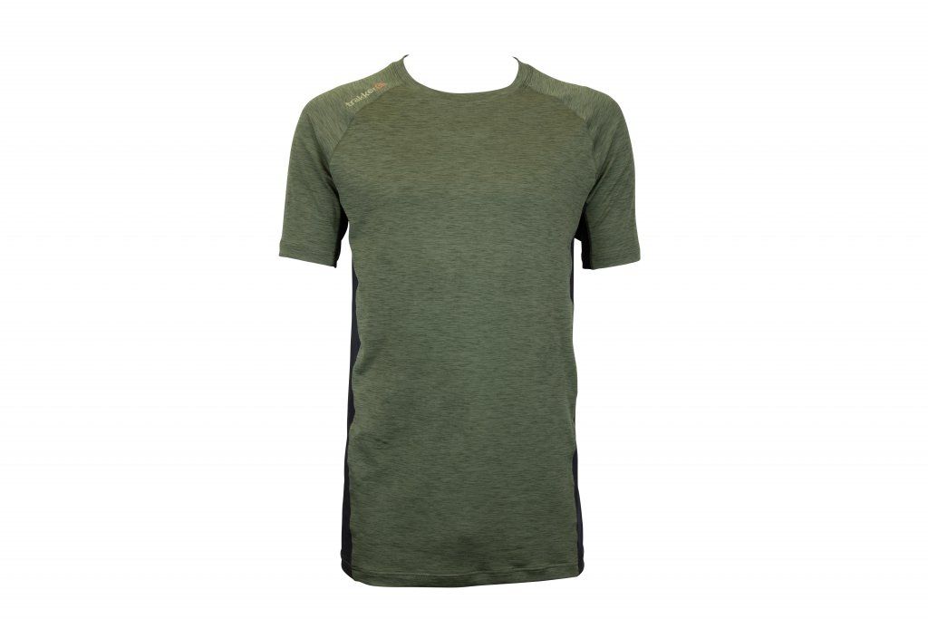 Toto sportovní triko má žíhavý design v khaki barvě. Po stranách se nacházejí kontrastní černé, prodyšné panely. Triko je navrženo v tzv. raglánovém střihu a je vyrobeno z příjemného a elastického materiálu. Díky tomu skvěle padne na tělo a nijak vás neomezuje v pohybu ani při nahazování. Jako u všech modelů oblečení značky Trakker, i toto triko je v zadní části mírně prodlouženo, aby vám spolehlivě zakrývalo bedra. Při návrhu trika jsme kladli důraz na použití ve všech rybářských situacích, kam se můžete dostat.