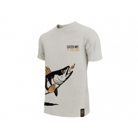 CATCH ME IF YOU CAN (chyť mě, pokud to dokážeš) se nepochybně stane jedinečným kouskem každého rybářského šatníku, díky kterému se u vody odlišíte. Triko Catch me! AMUR je designováno v tmavě zelené barvě s vyobrazením krmícího se amura, což jistě potěší příznivce lovu těchto ryb. Samotné tričko je vysoké kvality, stejně jako použitý barevný tisk.