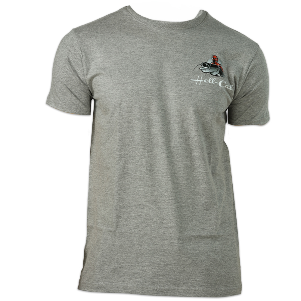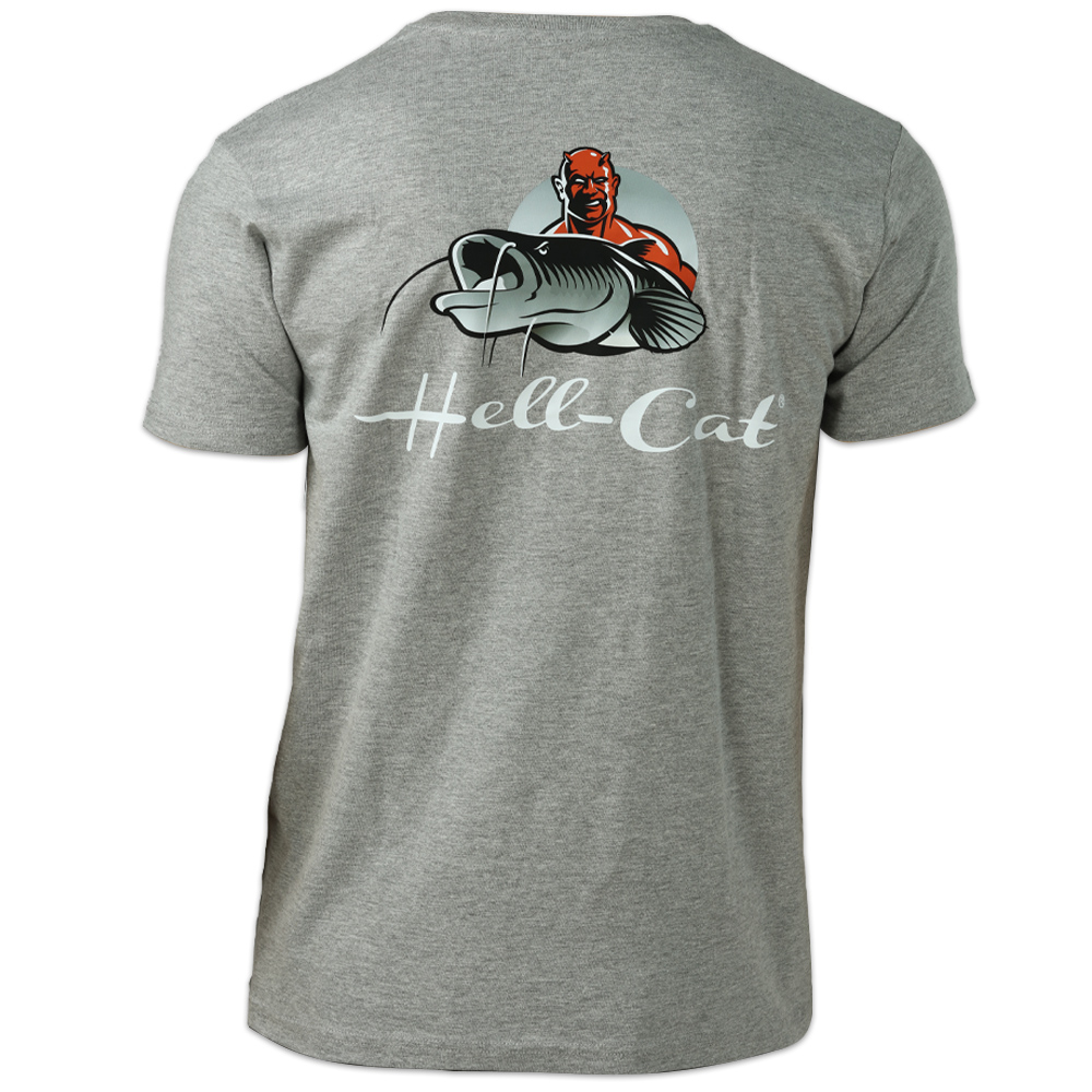 Kvalitní tričko v šedé barvě s logem značky Hell-Cat na prsou a větším na zádech....