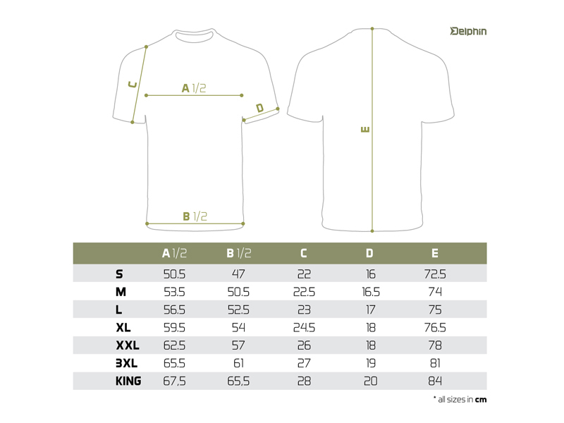 Použité materiály jsou příjemné na dotek a zaručují komfort při nošení. Samotné tričko je vysoké kvality, stejně jako použitý barevný tisk. Nabízíme je v široké škále velikostí od S až po KING SIZE (ekvivalent 4+XL, který je ve většině zemí označován jako XXXXXL). Model King size tedy hravě oblékne i ty nejstatnější rybáře o hmotnosti 135kg+.