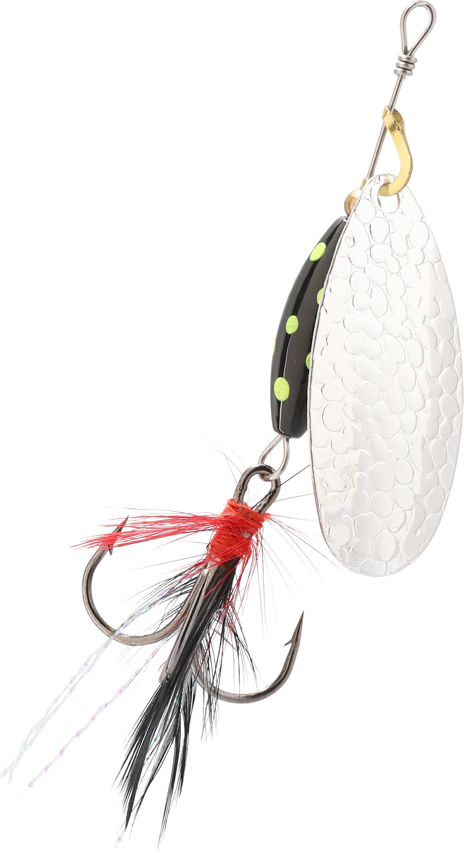 Rotační třpytka se širokým křidélkem a s těžkým, barveným tělem, které umožňuje prolovovat i ty nejméně přístupné místa a tůně v korytě řeky. Střapce zvyšují atraktivitu a četnost záběrů.
