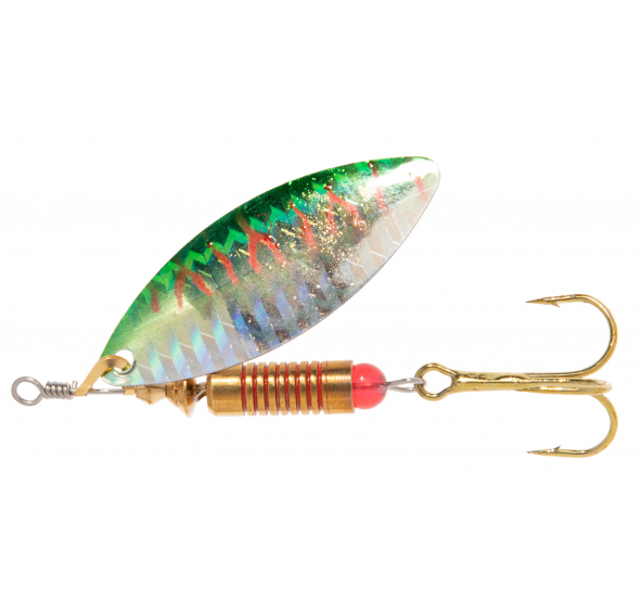 Rotační třpytka s křidélkem ve tvaru vrbového lístku pracuje blízko těla pod úhlem 30°. Imituje štíhlou rybku nebo hmyz, vhodná pro vedení při dně v hlubokých vodách. Na řekách je lepší proti proudu. Váha třpytky 4 g.