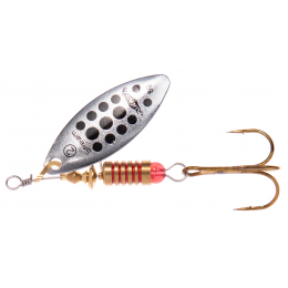 Rotační třpytka s křidélkem ve tvaru vrbového lístku pracuje blízko těla pod úhlem 30°. Imituje štíhlou rybku nebo hmyz, vhodná pro vedení při dně v hlubokých vodách. Na řekách je lepší proti proudu. Váha třpytky 4 g....