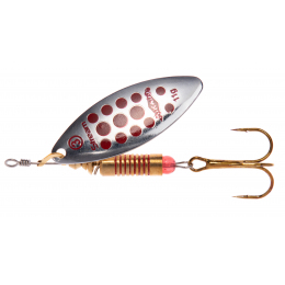Rotační třpytka s křidélkem ve tvaru vrbového lístku pracuje blízko těla pod úhlem 30°. Imituje štíhlou rybku nebo hmyz, vhodná pro vedení při dně v hlubokých vodách. Na řekách je lepší proti proudu. Váha třpytky 4 g....