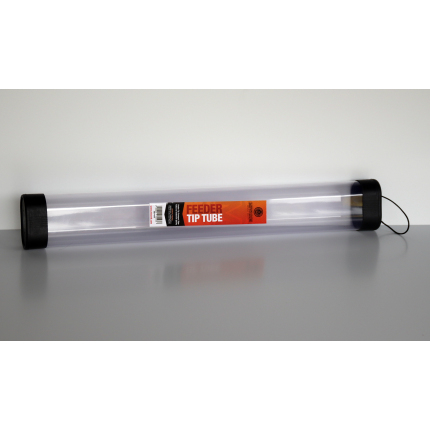 Pevný transparentní tubus pro bezpečnou přepravu feederových špiček.