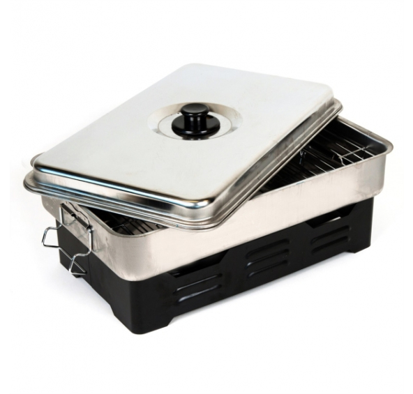 Kompaktní udírna pro rybolov nebo kemping. Jednoduchá a rychlá příprava chutné uzené ryby nebo masa. Nerezová konstrukce je snadno čistitelná.