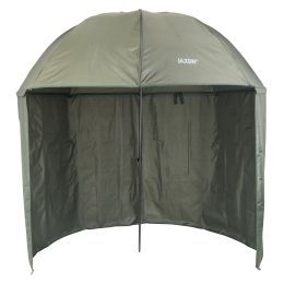Na plášť byl použit lehký, ale 100% nepromokavý a pogumovaný nylon s garantovaným vodním sloupcem 3.000mm. Precizně páskou zalepené švy pláště, zaručí 100% voděodolnost. Zesílené okraje pláště, zajišťující jeho ochranu proti poškození. Polohovací a zesílená středová tyč. Součástí deštníku je šest ocelových kotvících háků a dvě napínací šňůry do přední části. Rozměry: 2,5m Množství 1 EAN 5900113432109