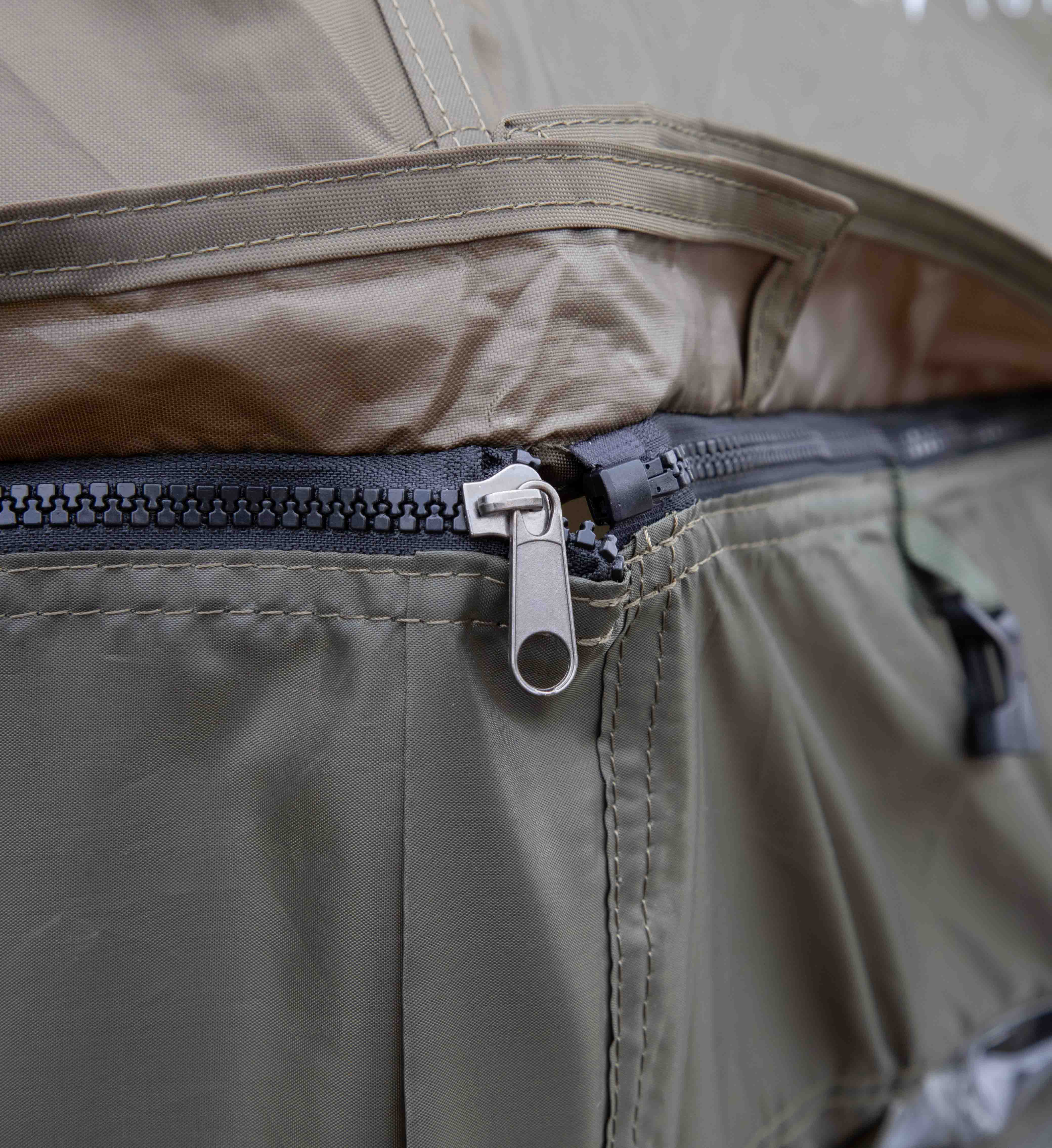 Průměr měřený podél vrchlíku je 3 m. Vyrobeno z voděodolného materiálu s podlepenými švy, nastavitelným úhlem a bočními stěnami. Okna s moskytiérou zajišťují větrání v horkých dnech.