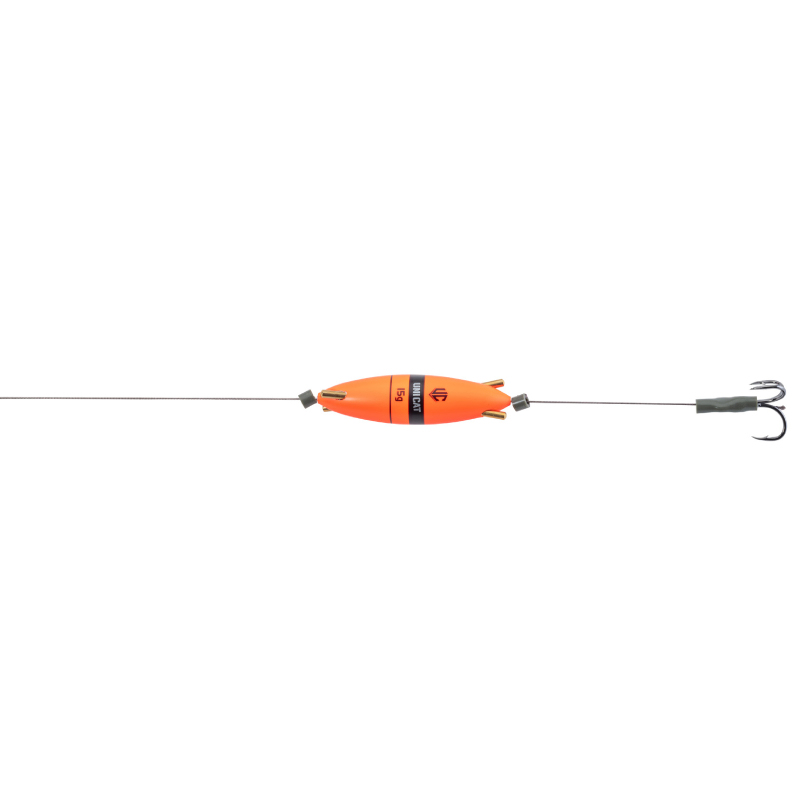 Celý popisTento ručně vázaný návazec je vybaven trojháčkem GT-41 ve velikosti 3/0 a podvodním splávkem UNI CAT Rattle o hmotnosti 25 g, který kromě nadlehčení nástrahy vytváří zvukový efekt pro zvýšení atraktivity. Kuličkový obratlík z nerezové oceli zajišťuje hladký chod, zatímco návazcový materiál UNI CAT Knock Out Leader poskytuje vysokou odolnost proti oděru.